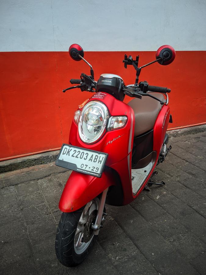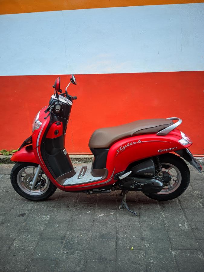 - Experience dynamic style and sporty performance with the red 2024 Honda Scoopy Gen 3. This 110cc bike is perfect for the young and adventurous, featuring ABS/CBS, an automatic gear shift, phone holder, and USB charger. Rent the thrill today!